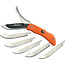 The ultimate double-blade knife for big game with our patented replacement razor-blade knife on one side, plus gutting blade on the other to open game like a zipper. This is the sharpest, strongest, replacement razor-knife available with blades that change safely and easily at the push of a button. The black-oxide coated blade holder supports the razor-blade for the strength of a standard knife and sharpness of a surgeon’s scalpel. Our signature gutting blade cuts underneath the skin without cutting hair, or piercing internal organs that can spoil fresh game meat. Both blades open and close independently with one hand and lock securely. The Razor-Pro comes complete with six 3.5” Japanese 420J2 stainless replacement blades and a nylon sheath with pockets to hold both the knife and spare blades. Replacement packs of 6 blades are sold separately. Rubberized TPR handles are available in black with a black nylon sheath and blaze-orange with Mossy Oak® camo sheath. The blaze-orange handle is easy to spot on the ground, saving valuable time in the field while preventing loss.
